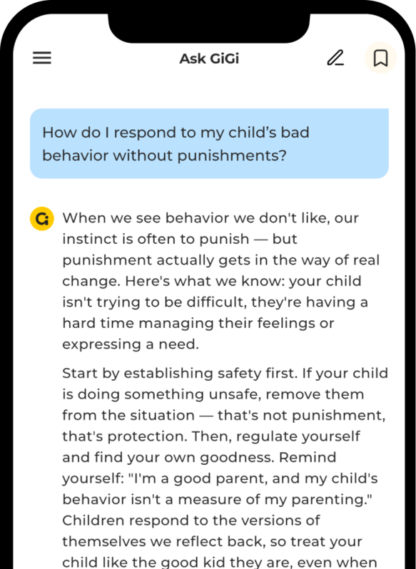 Good Inside parenting is sturdy parenting. We show parents how to effectively hold boundaries while staying connected to their kid. Our app seamlessly integrates the Good Inside approach into your everyday life.