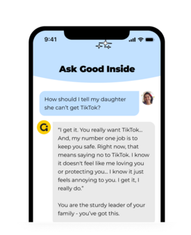 Which is why we built our app for your reality. The Good Inside Chatbot offers instant answers to your parenting questions.